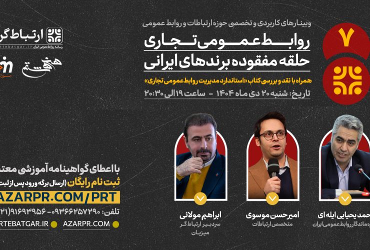 زمان برگزاری هفتمین وبینار تخصصی و کاربردی «ارتباطگر» با محوریت «روابطعمومی تجاری؛ حلقه مفقوده برندهای ایرانی» تغییر کرد. بر اساس اعلام برگزارکنندگان، این نشست تخصصی روز شنبه ۲۰ دیماه ۱۴۰۴ از ساعت ۱۹ تا ۲۱ بهصورت برخط برگزار خواهد شد. ...